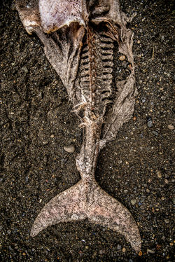 En aquellas visitas aprendí a observar las mareas, a oler el mar y tratar de verlo obviando los numerosos cultivos de chorito (un molusco) que pululan por la costa chilota. Yendo a visitar al delfín día a día, viendo sus huesos sacudidos por el mar, o desperdigados por la acción de los jotes, mirando la caja torácica mecida por las olas, o la parte posterior del cráneo entre piedras y conchas, me encontraba imaginando que podría tratarse de un hombre, de los restos de una mujer, de alguna de aquellas 400 o 500 personas que, durante la dictadura de Pinochet los agentes del Estado ataron a rieles de tren y lanzaron al mar esperando que el fondo desconocido se los tragara de un bocado, que se tragara sus crímenes y no escupiera a la superficie, a las playas, ninguna evidencia, esperando torpemente que el mar lavara la memoria.
